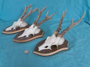 Set of 5 Vintage Roe Deer Antlers on wooden Trophy-Plaques Wallmounts