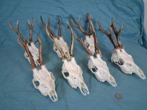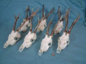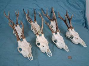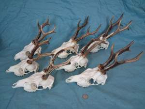 Set of 7 Strong European Roe Deer Antlers – complete Skulls